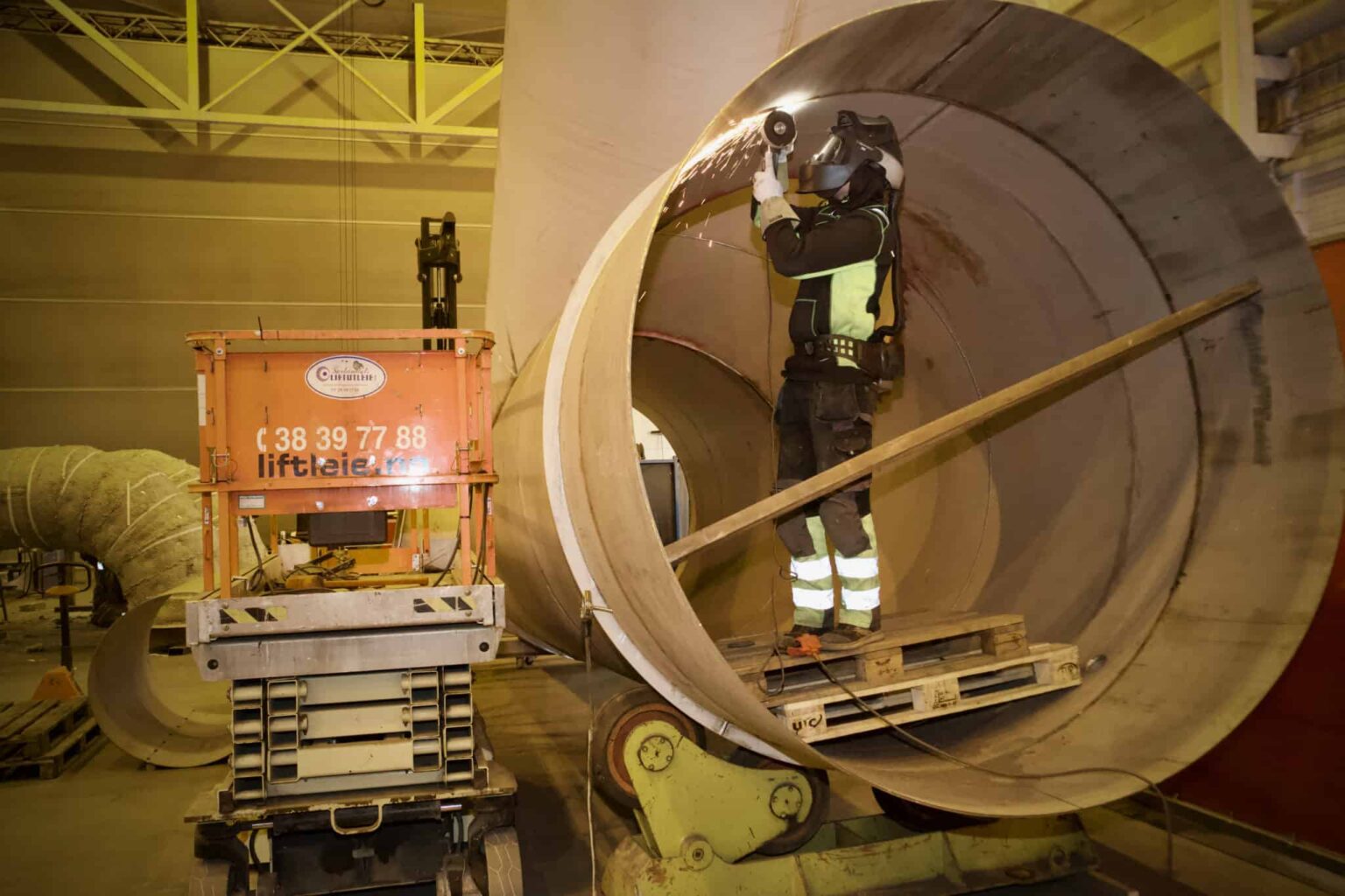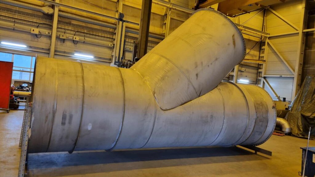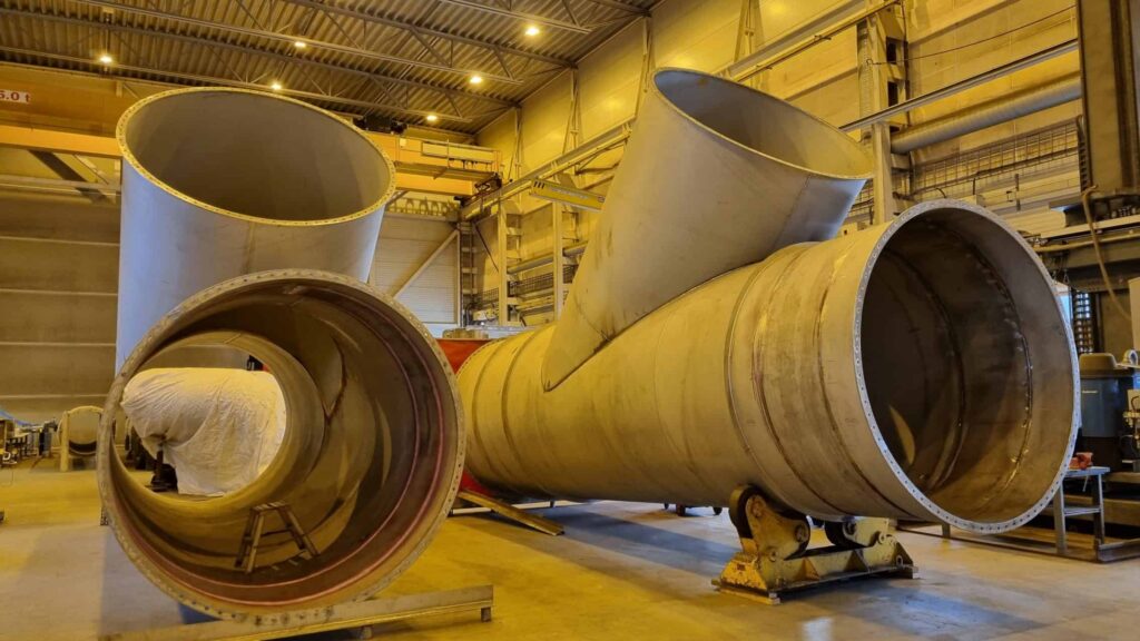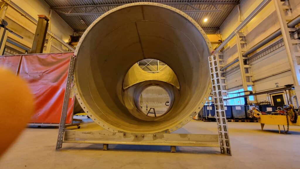 Eksosrørene er har en innvendig diameter på 2,4 meter og ruver godt i verkstedhallen.