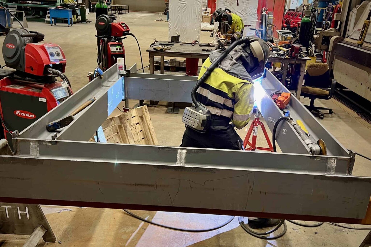 To mann er satt på jobben, som tar rundt fire uker. Omfattende testing må gjennomføres før rammen – som måler 2,43 ganger 1,60 meter – kan sendes til kunden.